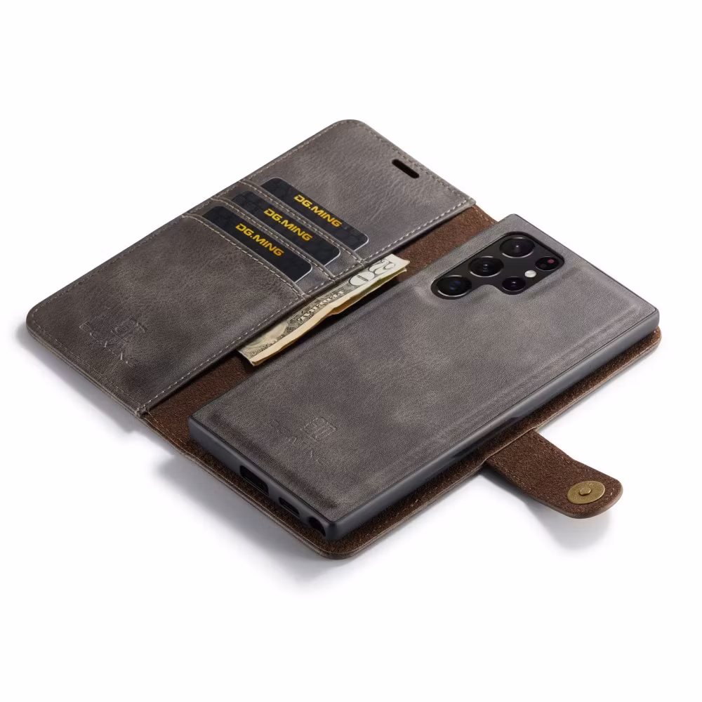 Samsung S23 Ultra - DG.MING® 2in1 Magnet Läder Fodral Grå