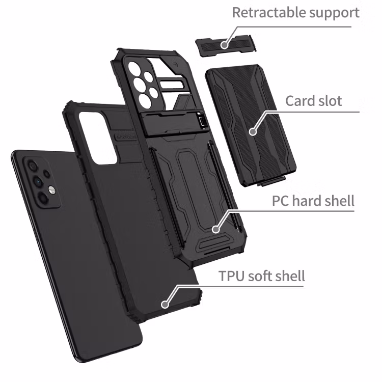 Samsung A52/A52s - Stöttåligt Hybrid Skal Kortfack Svart