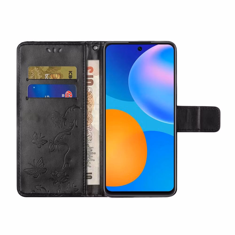 Samsung Galaxy S21 FE - Läder fodral Fjärilar Svart