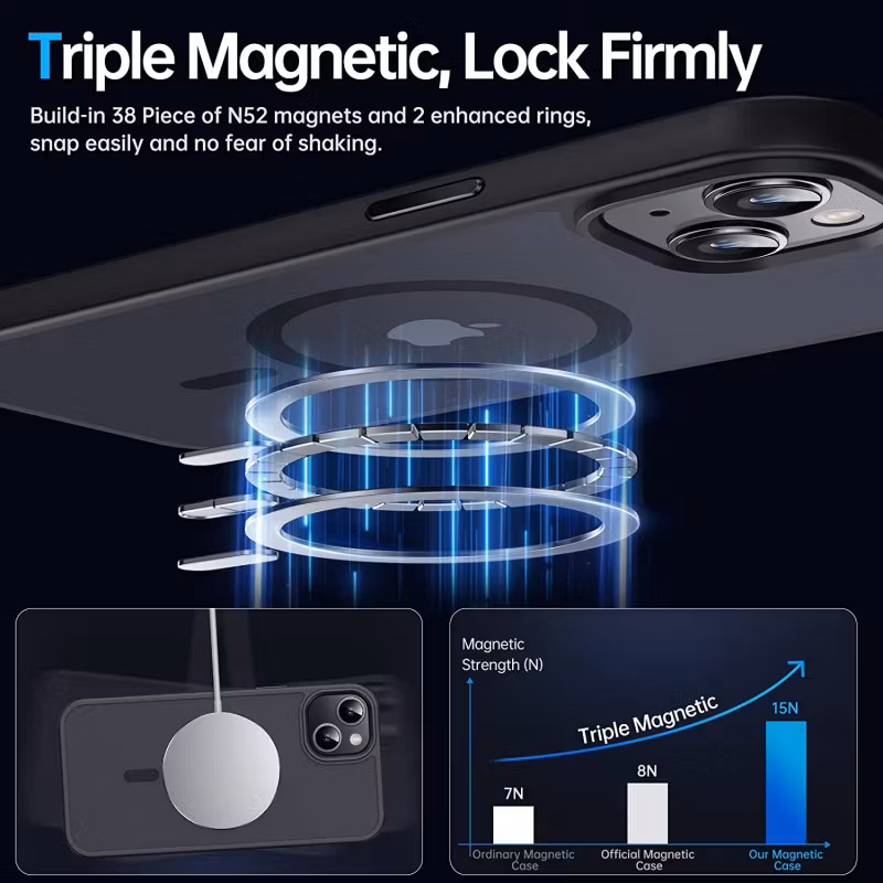 Mattsvart Magsafe skal med starka magneter som passar iPhone 11. Den magnetiska ringen säkerhetsställer en maximal och snabb laddningseffektivitet och en snabb och enkel anslutning till alla MagSafe tillbehör.