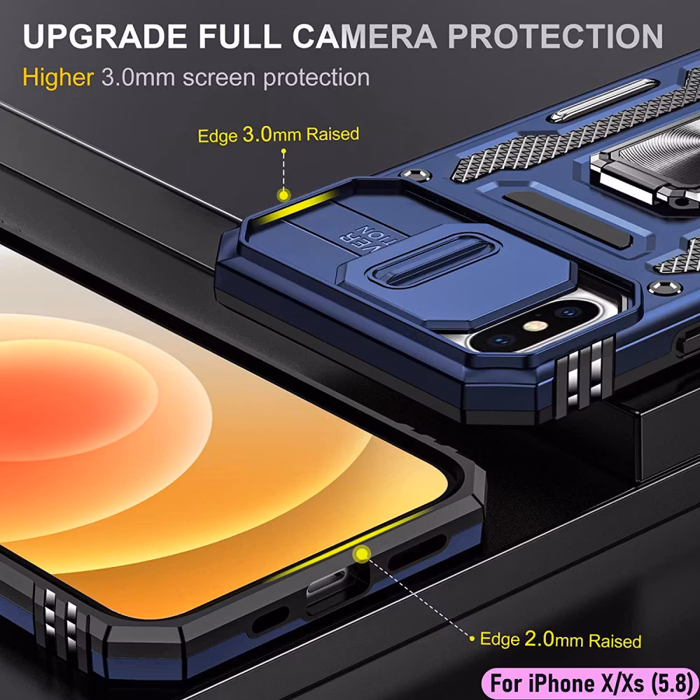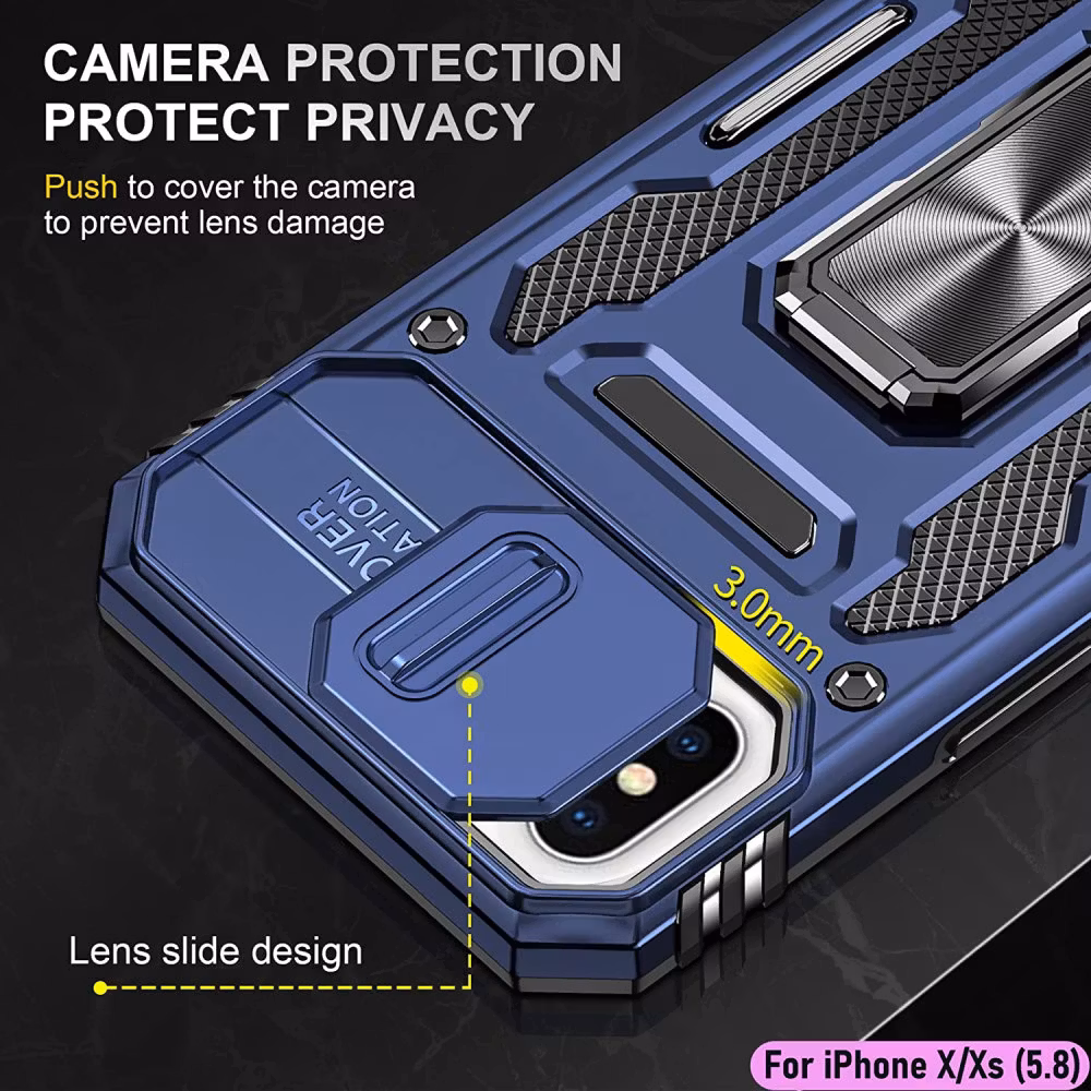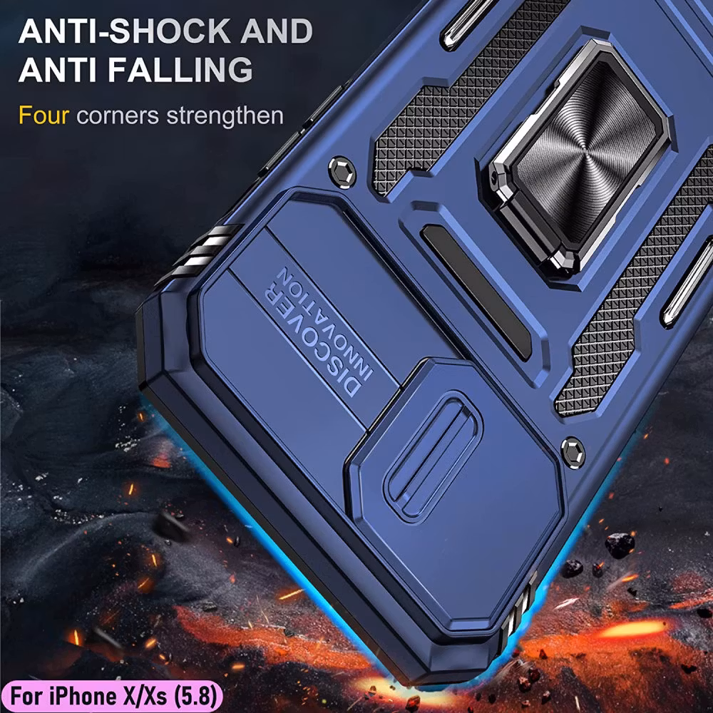 iPhone X/XS - Skal Kameraskydd Stöttåligt Hybrid Ringhållare Blå