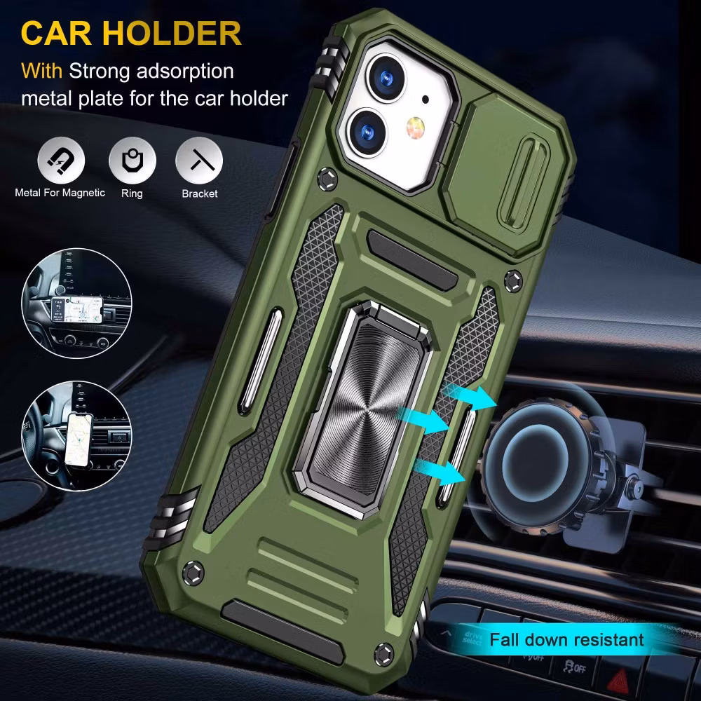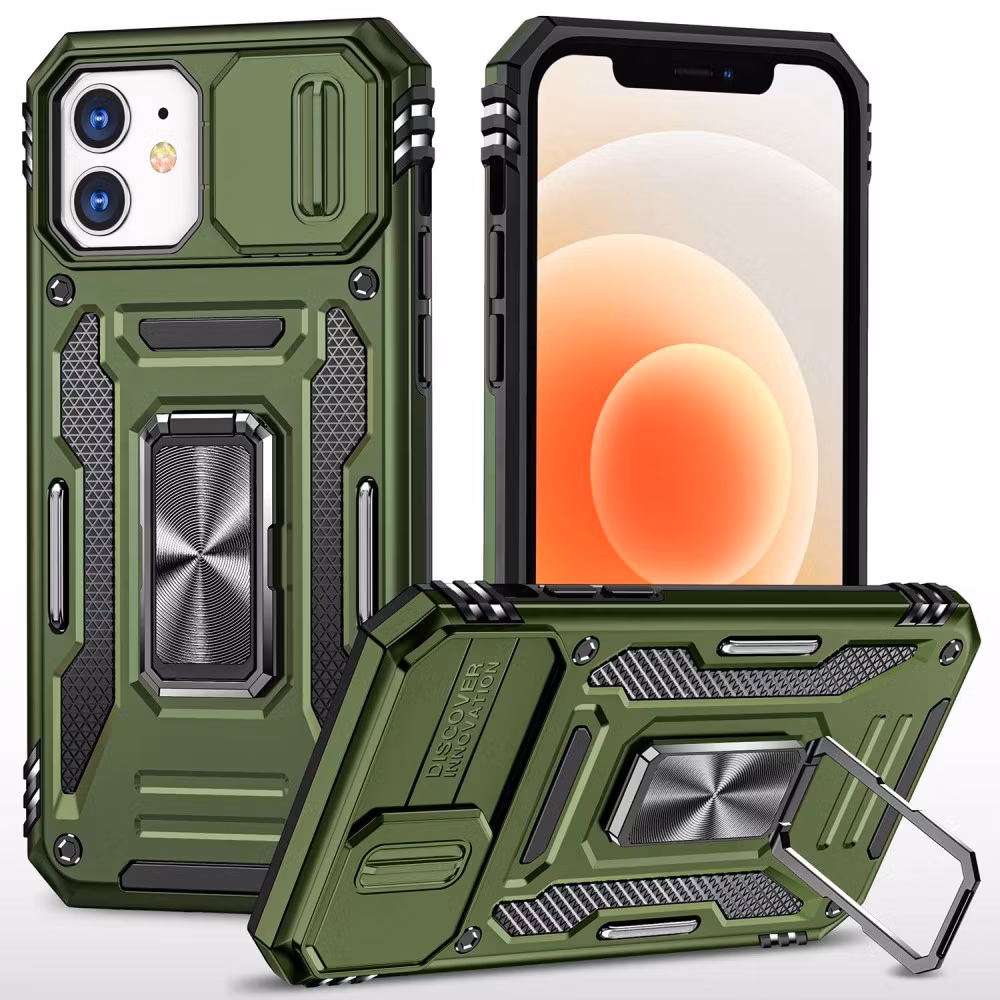 iPhone 12/12 Pro - Skal kameraskydd Stöttåligt Hybrid Ringhållare Grön