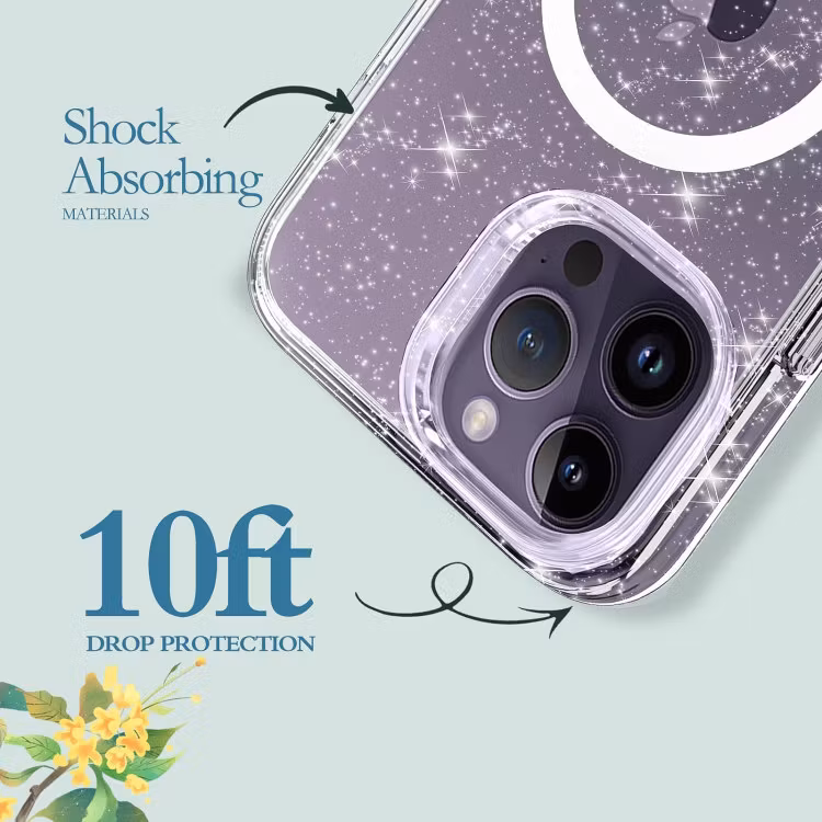 Magsafe skal med glittrig transparent hård baksida med en stötdämpande ram av silikon som passar Apple iPhone 12/12 Pro. Endast 2mm tunt och skyddar din mobil effektivt mot skador och repor.