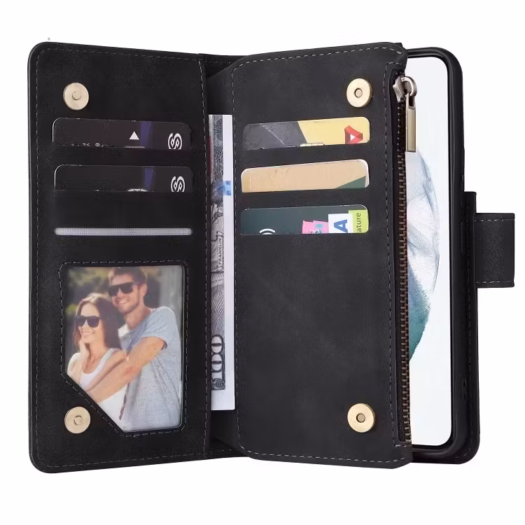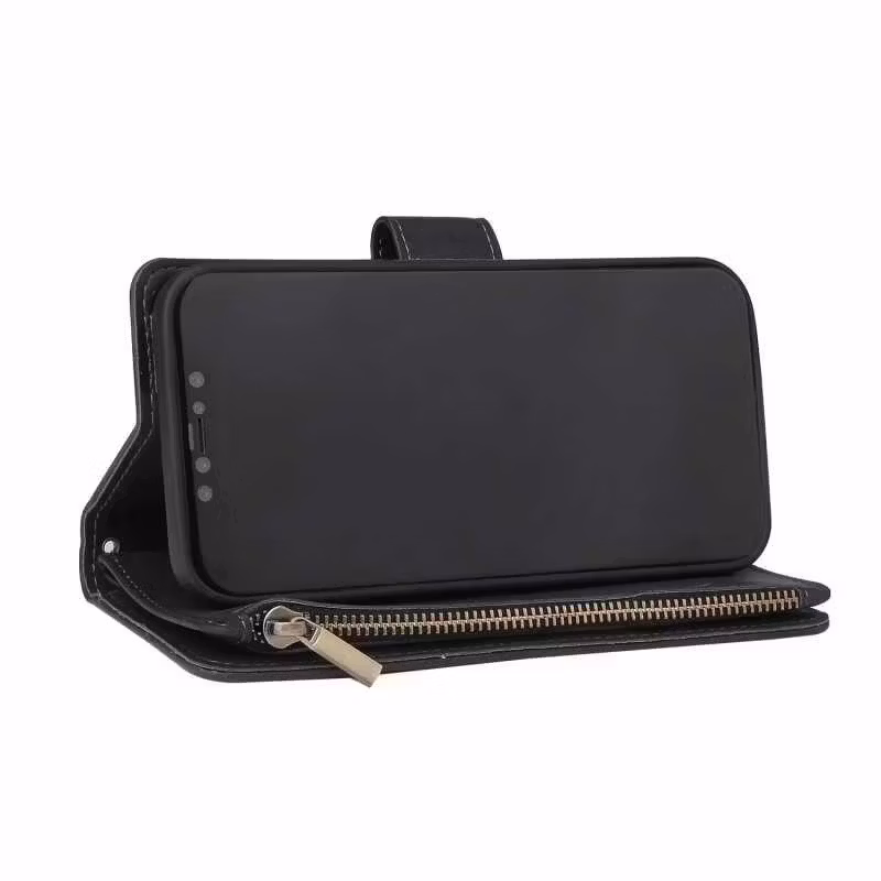 iPhone 12 - Multifunktionellt Plånboksfodral Zipper 8-Fack Svart