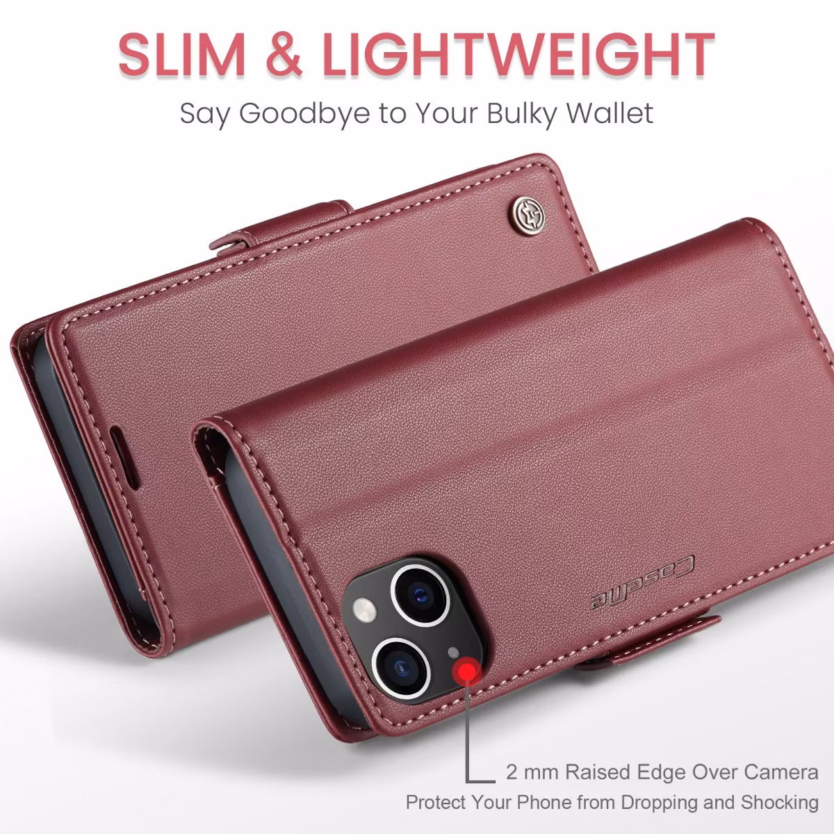 iPhone 13 - Fodral Premium Läder RFID Skyddat CaseMe® Röd