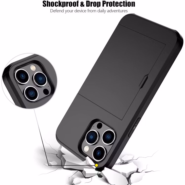 iPhone 14 Pro Max - Stöttåligt Skal med Kortfack Extra Förstärkt Svart