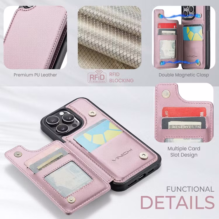 iPhone 14 Pro - Stöttåligt Skal 4-FACK Korthållare Roséguld