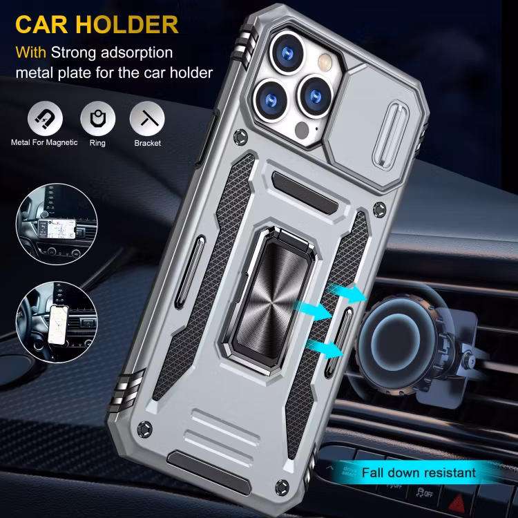 iPhone 14 Pro - Skal Kameraskydd Stöttåligt Hybrid Ringhållare Grå