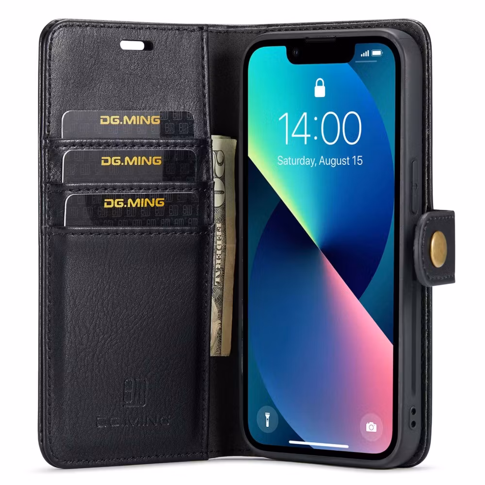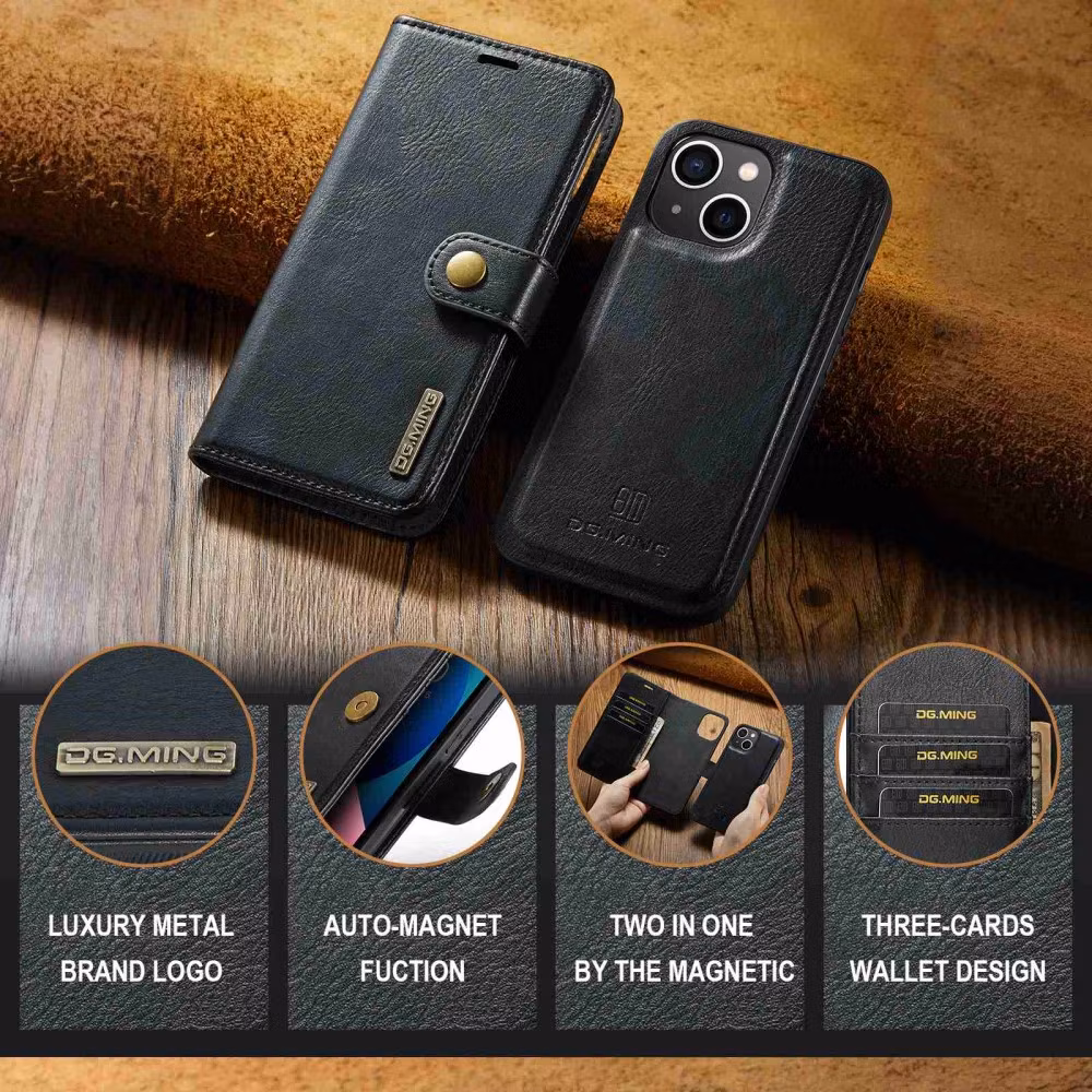 iPhone 14 - DG.MING® 2in1 Magnet Läder Fodral Svart