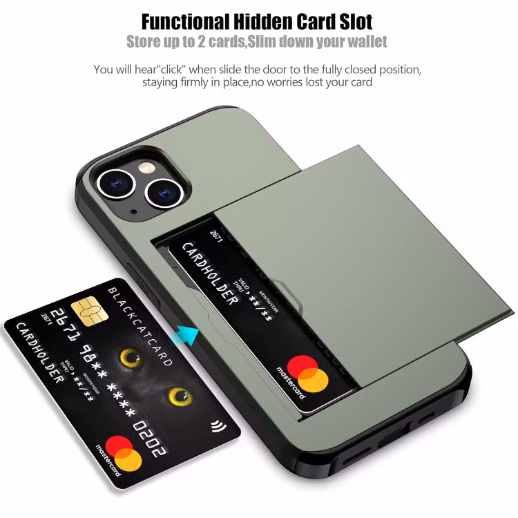 Kopia iPhone 14 - Stöttåligt Skal med Kortfack Extra Förstärkt Grön