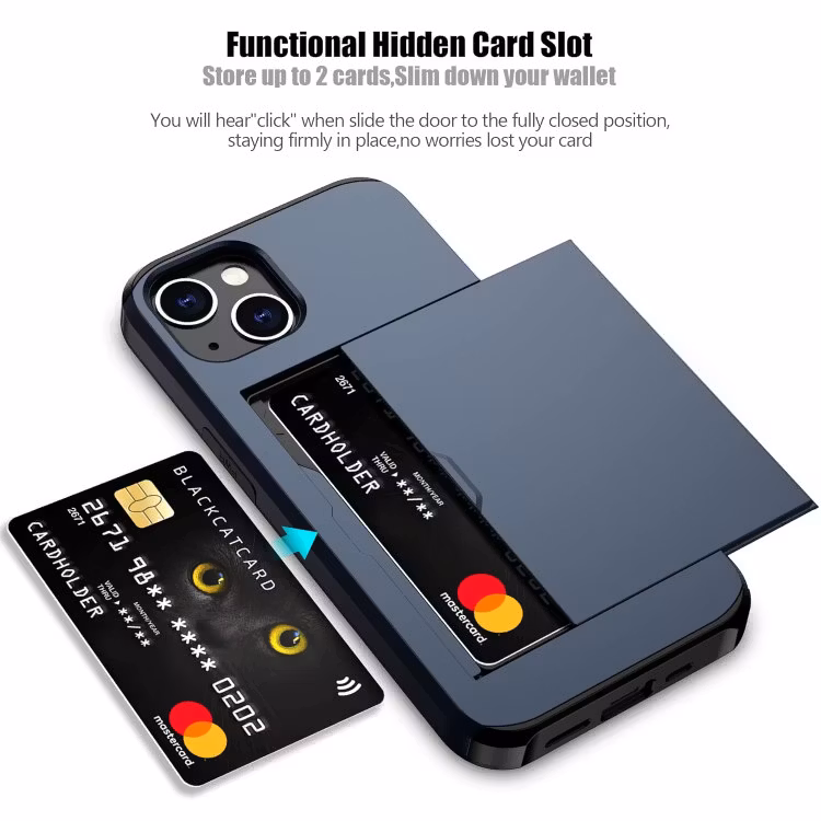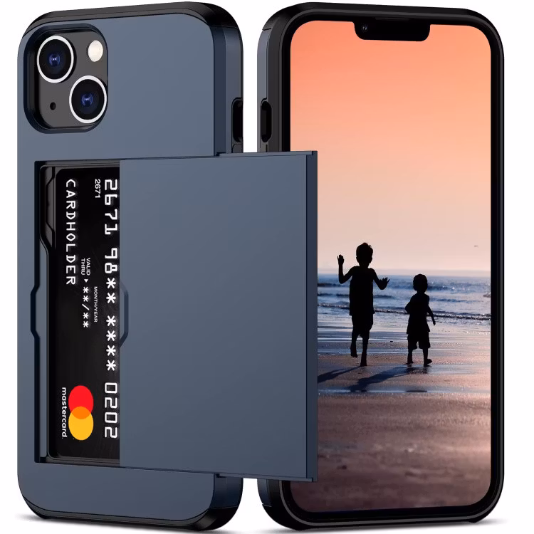 iPhone 14 - Stöttåligt Skal med Kortfack Extra Förstärkt Blå