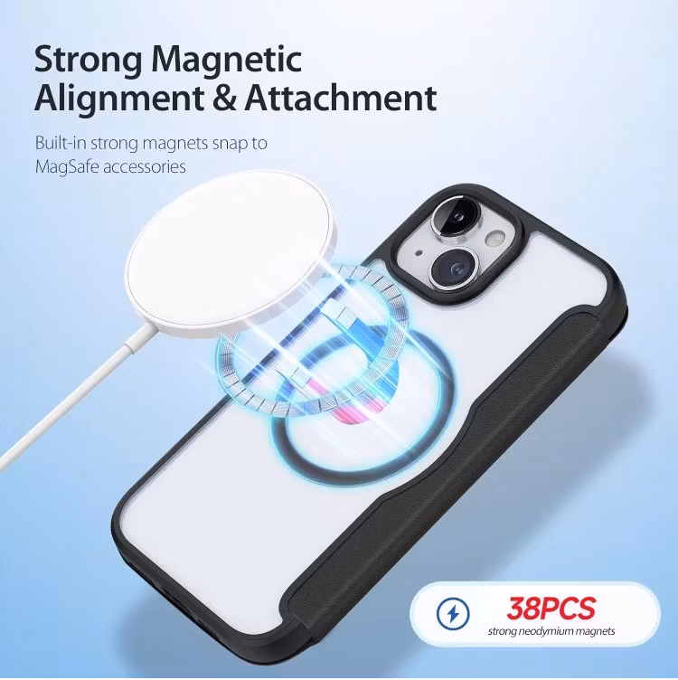 Detta fodral har också inbyggda magneter för att du ska kunna ladda din iPhone med MagSafe-laddaren, eller använda andra MagSafe-tillbehör såsom till exempel korthållare. De starka magneterna ser till att hålla laddare och andra tillbehör stadigt på plats. MagSafe-laddarens och andra trådlösa laddares signaler påverkas inte av fodralet.