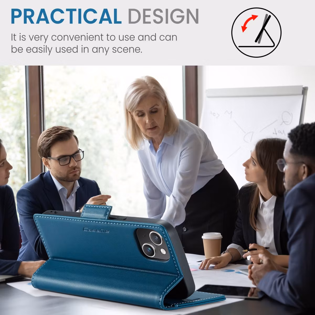 iPhone 15 - Fodral Premium Läder RFID Skyddat CaseMe® Blå