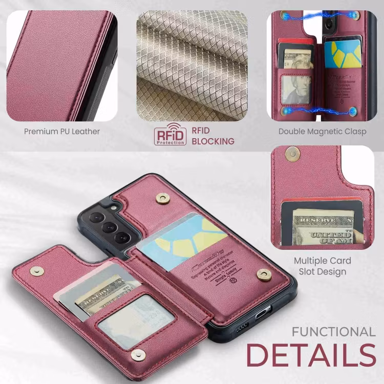 Mobilskal med korthållare för upp till 4 kort som passar Samsung Galaxy S21. Stötdämpande med förstärkta hörn som skyddar din mobil mot repor och skador. RFID Skyddat skal som ger din mobil och kort maximalt skydd mot så kallad skimming.