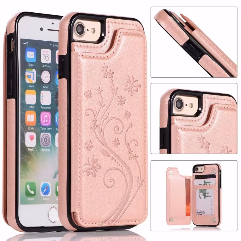 Slimmat och elegant Läderskal med kortfack för upp till 3 kort som passar Apple iPhone 7/8/SE (2020 & 2022). Stötdämpande med förstärkta hörn som skyddar din mobil mot repor och skador. Upphöjda kanter som motverkar repor på skärmen och kameran om mobilen placeras med skärmen nedåt.