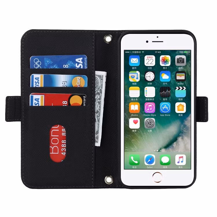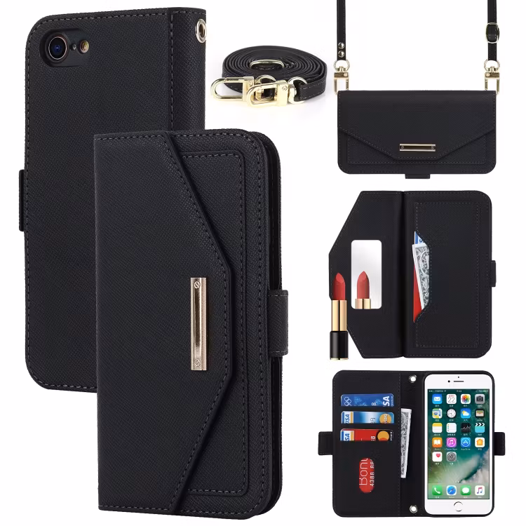 iPhone 7/8/SE - Elegant Plånboksfodral Med Spegel Svart