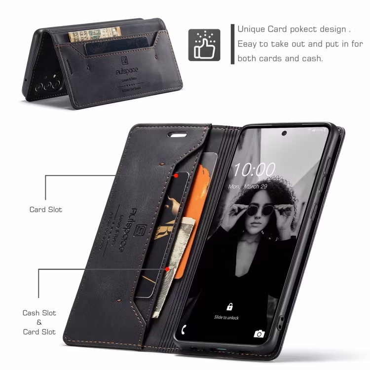 Samsung A52 / A52s - Premium Läder Fodral RFID Skyddat Svart