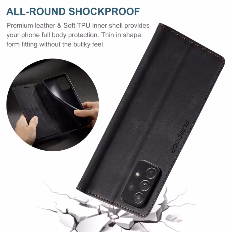 Samsung A53 - Premium Läder Fodral RFID Skyddat Svart