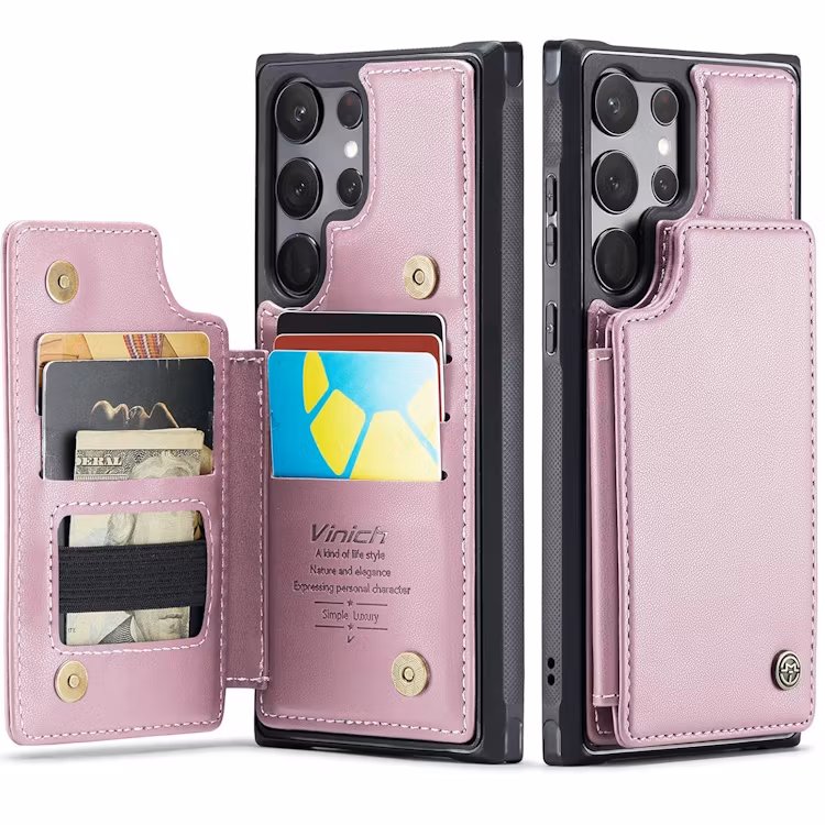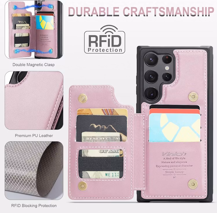 Samsung S23 Ultra - Premium Läderskal Korthållare RFID Skyddat Roséguld