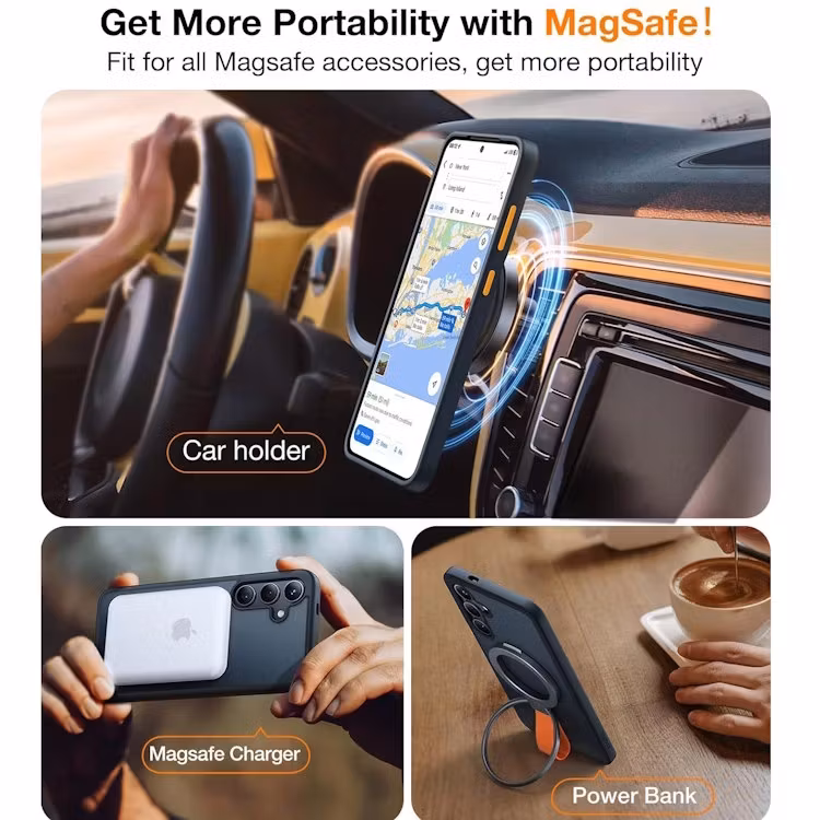 Detta skal har också inbyggda magneter för att du ska kunna ladda din iPhone med MagSafe-laddaren, eller använda andra MagSafe-tillbehör såsom till exempel korthållare. De starka magneterna ser till att hålla laddare och andra tillbehör stadigt på plats. MagSafe-laddarens och andra trådlösa laddares signaler påverkas inte av skalet.