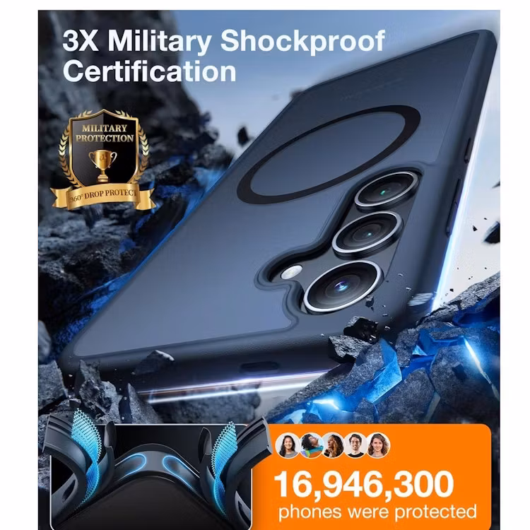 De fyra hörnen på skalet är konstruerade som en elastisk buffert som effektivt kan distribuera och därmed dämpa kraften från stötar, vilket skyddar din telefon från skador vid exempelvis fall. Hörnen sticker också ut på baksidan för att baksidan av skalet inte ska repas.