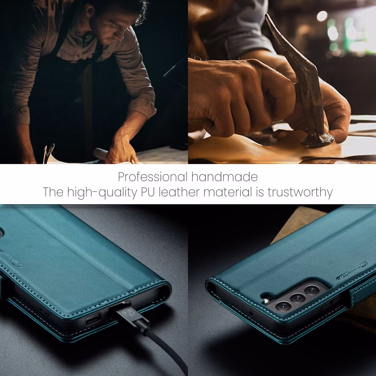 Samsung S24 - Fodral Premium Läder RFID Skyddat CaseMe® Grön