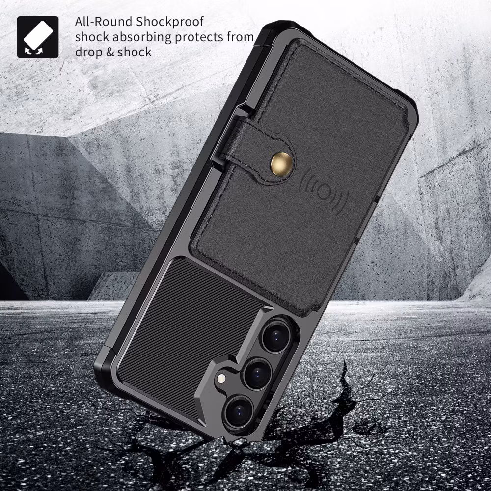 Samsung S25 - Skal Stöttåligt 4-FACK Korthållare Svart
