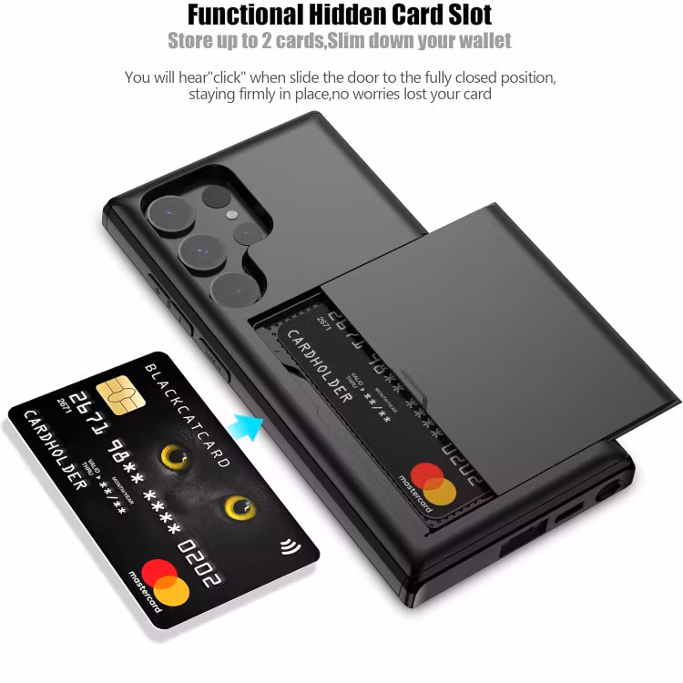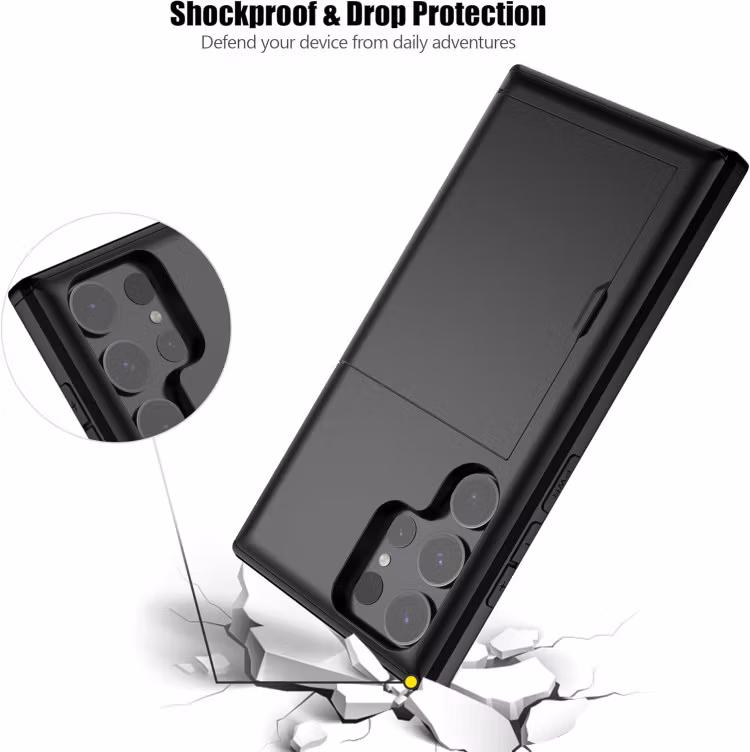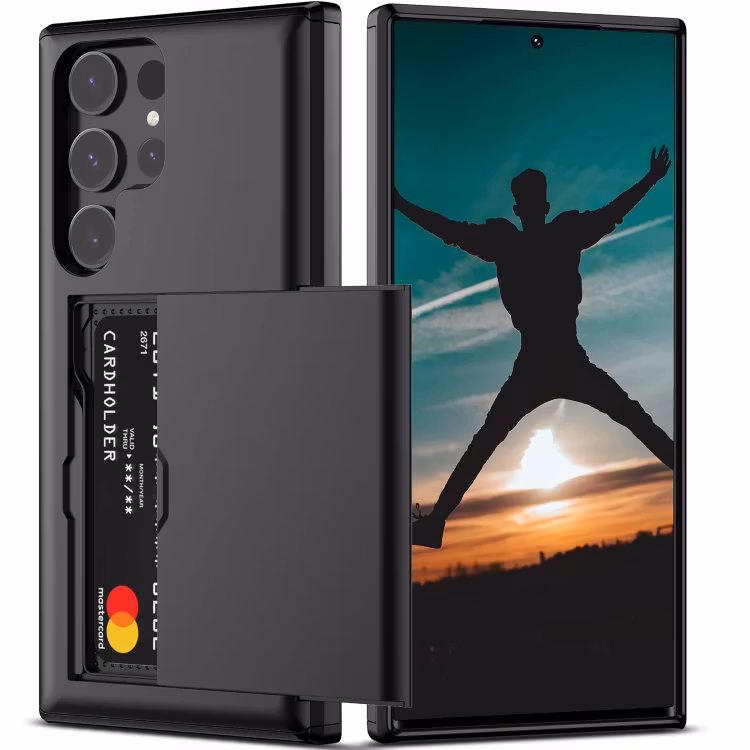 Samsung S25 Ultra - Stöttåligt Skal med Kortfack Extra Förstärkt Svart