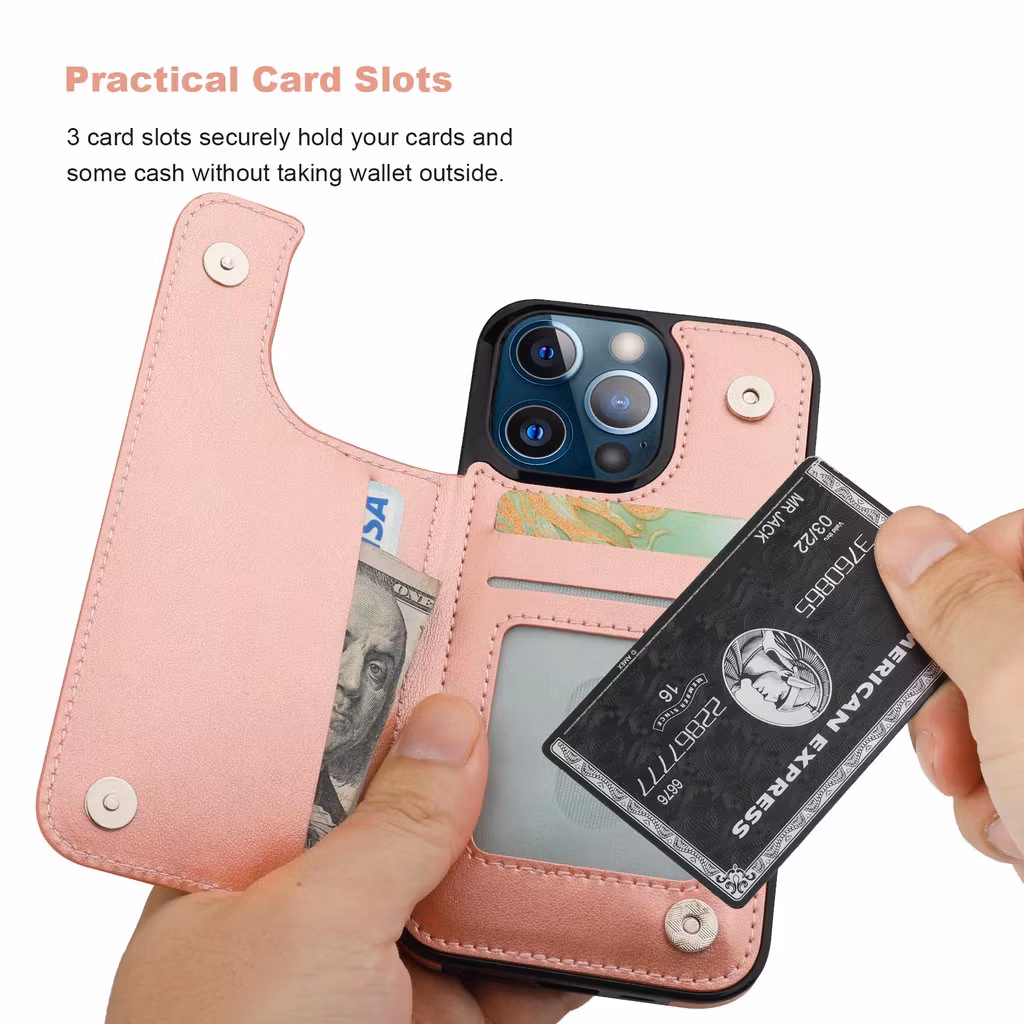 Slimmat och elegant Läderskal med kortfack för upp till 3 kort som passar Apple iPhone 13 Pro. Stötdämpande med förstärkta hörn som skyddar din mobil mot repor och skador. Upphöjda kanter som motverkar repor på skärmen och kameran om mobilen placeras med skärmen nedåt.