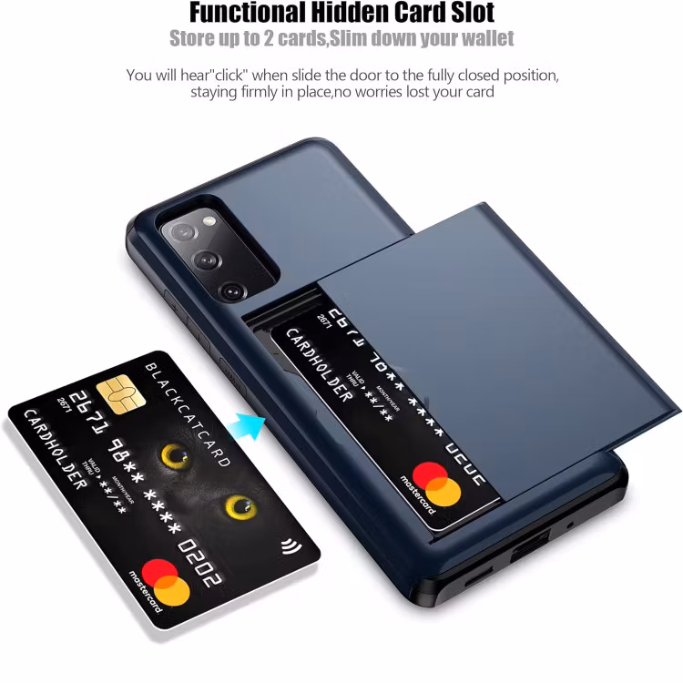 Robust och stöttåligt skal från Solid® med inbyggt dolt kortfack för upp till 3 kort som passar Samsung Galaxy S20 FE. Skyddar effektivt mobilden mot skador, repor och smuts.